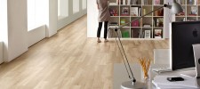 เพียงเทกาวลงบนพื้นแล้วปาดกาวให้สม่ำเสมอทั่วห้องและรอกาวแห้งพอหมาดจึงเริ่มติดตั้งได้